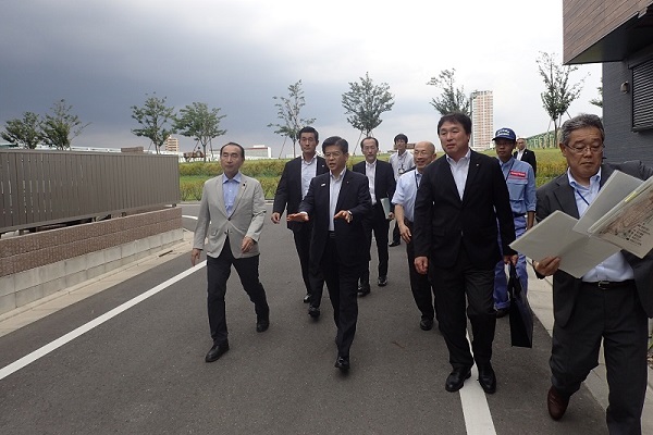8月21日(水)、石井大臣は、東京都江戸川区の江戸川高規格堤防(北小岩一丁目地区)の整備箇所などを視察しました。