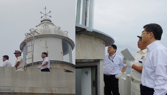 西郷岬灯台の設備について説明を受ける石井大臣