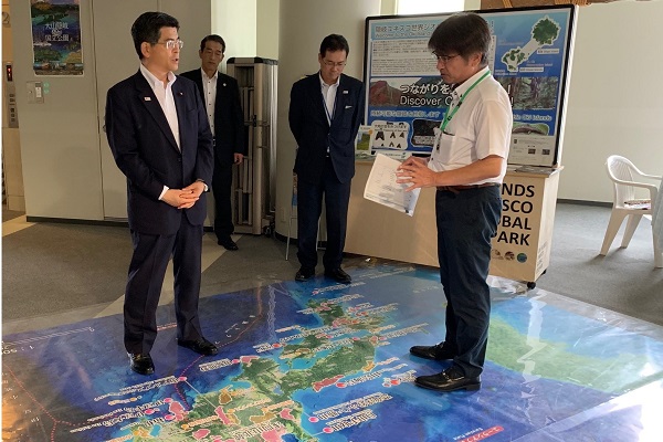 島根県隠岐の島町の観光概要について説明を受ける石井大臣