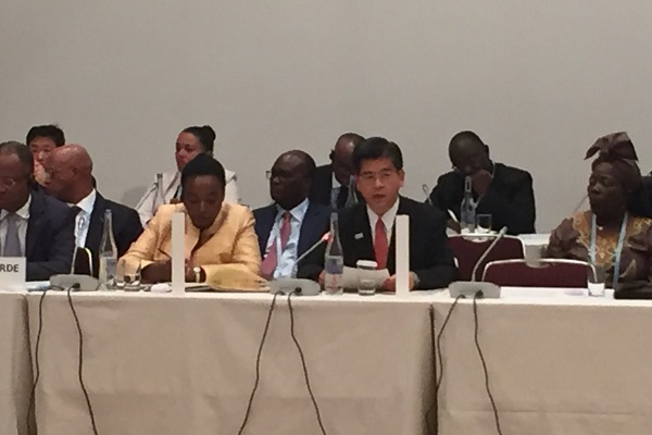TICAD7テーマ別会合ブルーエコノミーにおいて発言する石井大臣