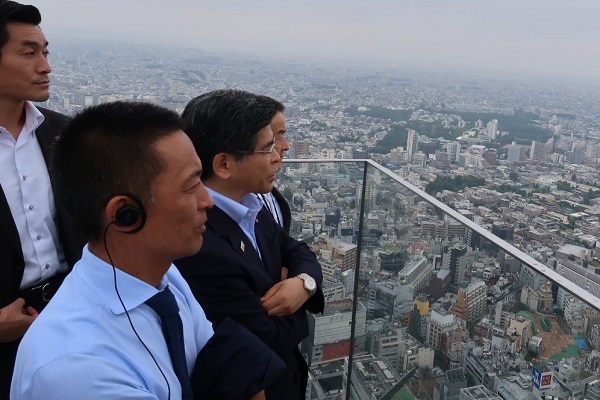 渋谷スクランブルスクエアで説明を受ける石井大臣