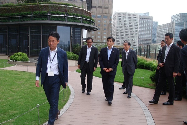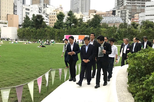 東京ミッドタウン日比谷のパークビューガーデンを視察する石井大臣