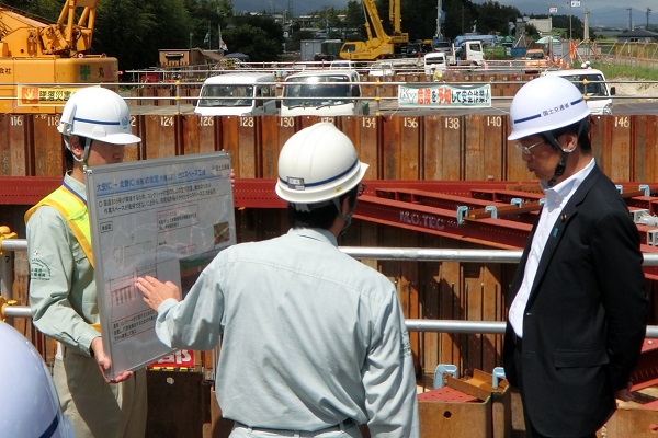 東海環状自動車道の整備状況について説明を受ける阿達政務官