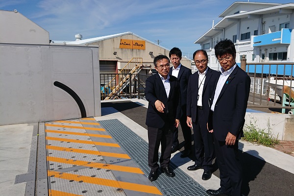 LNGバンカリング事業の進捗状況を視察する阿達政務官
