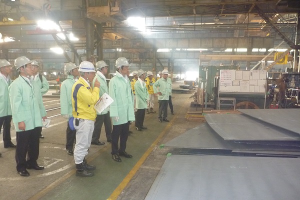 津市では、津松阪港海岸の整備状況と、ジャパンマリンユナイテッド株式会社において、船舶の生産ラインを視察しました。