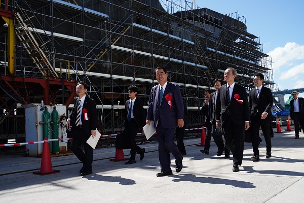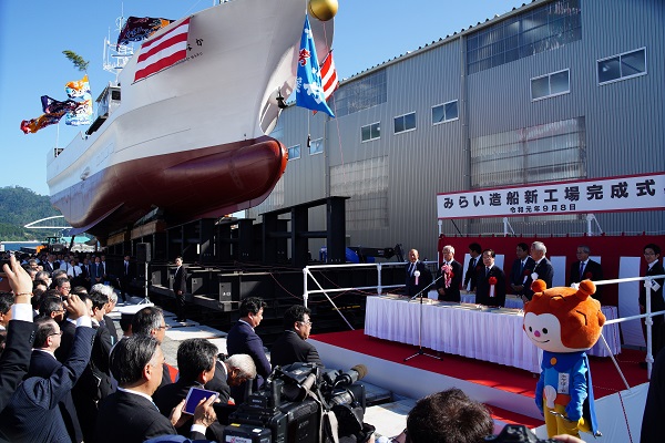牧野副大臣は式典の祝辞で、「新しい時代における地域の「輝かしい未来」に向けて、「みらい造船」が大いに貢献されていくことをご期待申し上げます。」と述べました。