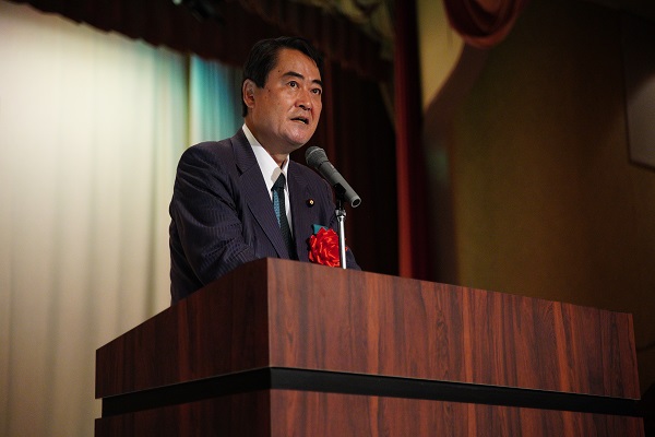 式典で祝辞を述べる牧野副大臣