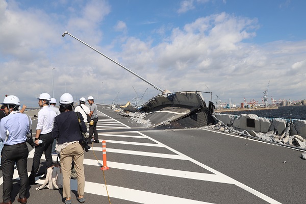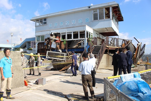 9月12日(木)、赤羽大臣は、9月8日から9月9日未明にかけて関東地方に上陸した台風15号による被災状況を確認するため、横浜港の本牧海づり施設、南本牧はま道路を視察いたしました。