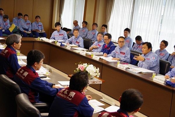 熊本県庁で熊本県知事と意見交換をする赤羽大臣