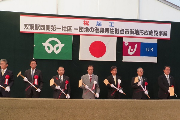 【令和元年10月1日】 「双葉駅西側第一地区一団地の復興再生拠点市街地形成施設事業起工式」に門政務官が出席