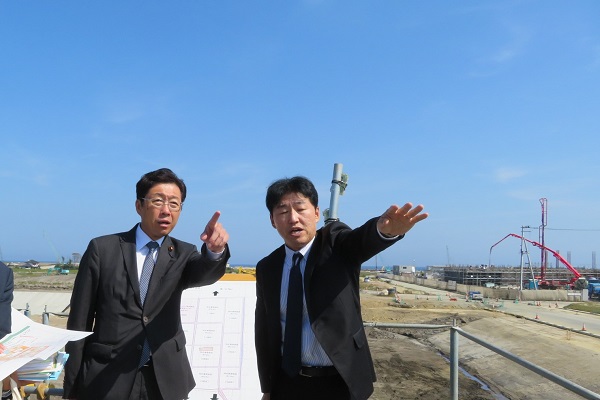 また、福島県の復興祈念公園予定地や福島復興再生拠点整備事業の中野地区の取組状況を視察しました。