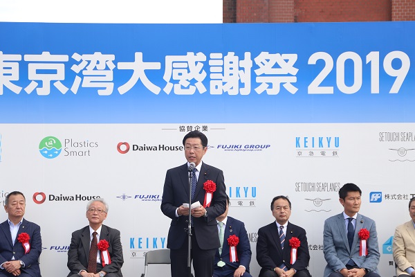 10月26日(土)、門政務官は、横浜市の横浜赤レンガ倉庫で行われた東京湾の環境再生について啓発する目的で開催された「東京湾大感謝祭2019」のオープニングセレモニーに出席し、挨拶をしました。