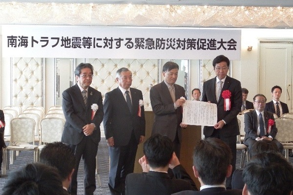 11月14日(木)、関係府県・経済団体等が主催する「南海トラフ地震等に対する緊急防災対策促進大会」が開催され、門政務官が出席しました。