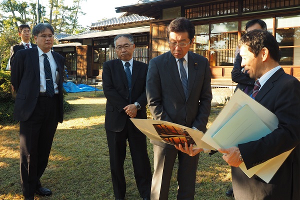 12月4日(水)に、門政務官は、明治150年関連施策の一環として、国と地方公共団体の連携の下、神奈川県大磯町において整備を行う明治記念大磯邸園の旧滄浪閣(伊藤博文邸跡)、旧大隈重信別邸、陸奥宗光別邸跡の状況を視察されました。