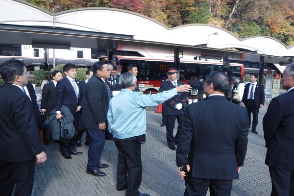 12月8日(日)、赤羽大臣は神奈川県箱根町を訪れ、台風19号により被害を受けた箱根登山鉄道の代行バスの運行状況や、復旧作業が進む箱根登山鉄道、箱根町内の国道1号、国道138号の被災現場を視察しました。