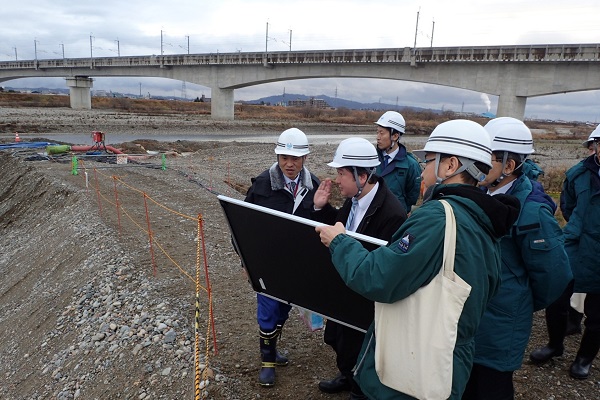 急流河川対策の施工状況について説明を受ける和田政務官