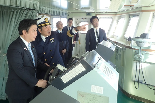 巡視船やひこ船内を視察する和田政務官
