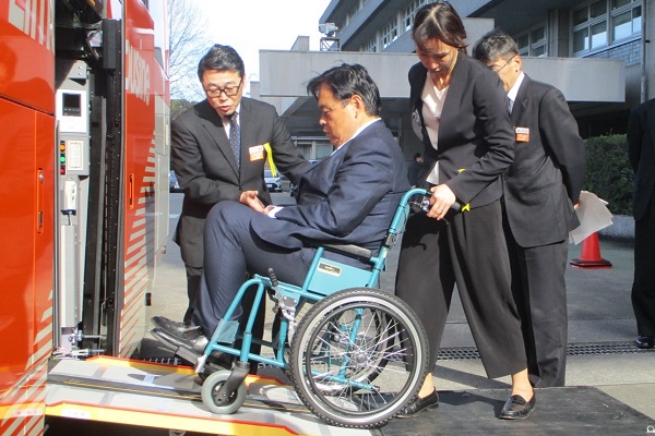 12月24日(火)、エレベーター付きリムジンバスに赤羽大臣が試乗されました。