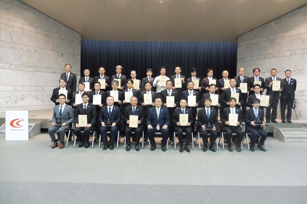 赤羽大臣は、受賞者に対し、「皆様が地域や業界のトップランナーとして、あらゆる建設現場で、i-Constructionに積極的に取り組み、その効果等を発信していただくことが重要」と述べました。