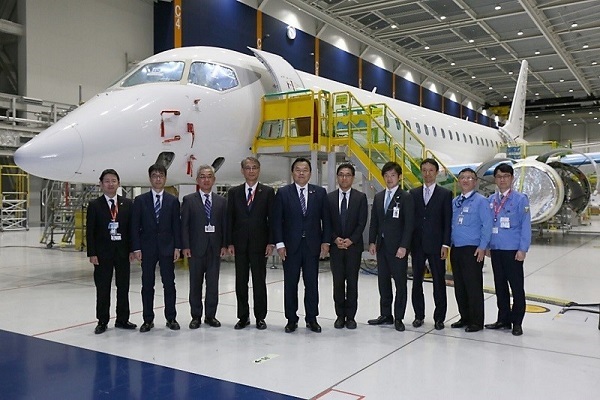 スペースジェットの開発状況を視察する赤羽大臣
