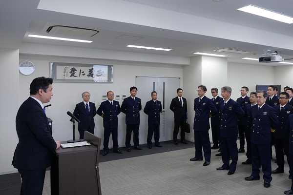 第四管区海上保安本部で職員の激励を行う和田政務官
