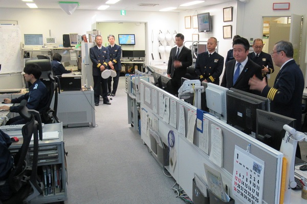 第四管区海上保安本部では、業務説明を受けた後、職員の激励を行いました。