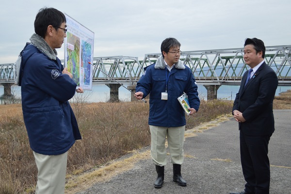 国道1号尾張大橋の現地状況を視察する和田政務官