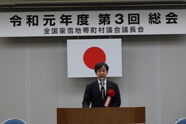 2月5日(水)、全国豪雪地帯町村議会議長会「令和元年度第3回総会」に、青木副大臣が出席しました。
