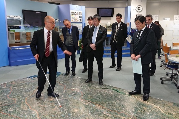 首都圏外郭放水路の説明を受ける青木副大臣と佐々木政務官