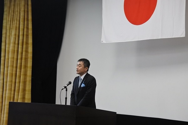職員の激励を行う佐々木政務官