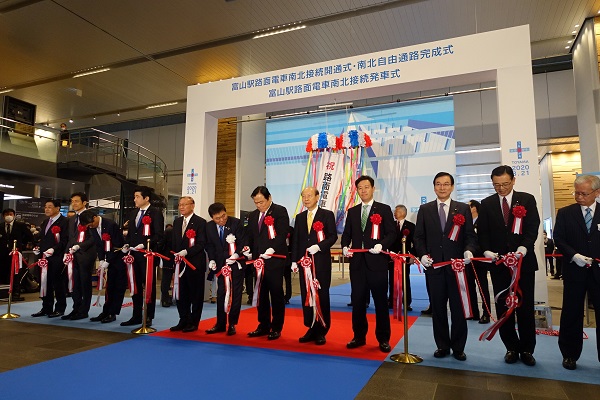 3月20日(金)、赤羽大臣は、富山県富山市で開催された、富山駅路面電車南北接続開通式及び南北自由通路完成式、富山駅路面電車南北接続発車式に出席しました。