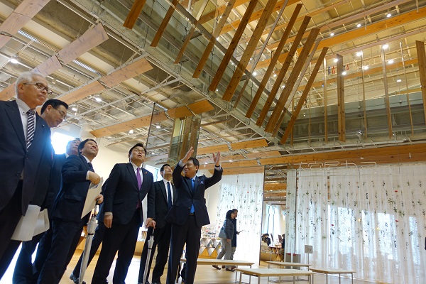 富山市中心部の公益施設(TOYAMAキラリ)を視察する赤羽大臣