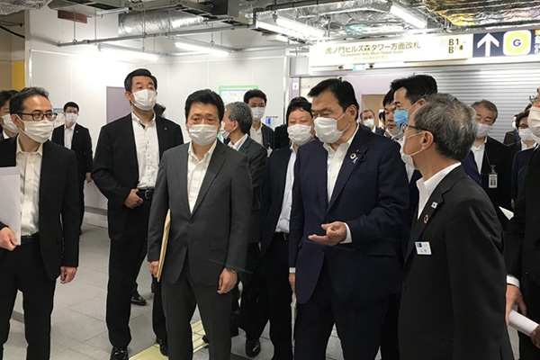 【令和2年6月5日】赤羽大臣が虎ノ門ヒルズ駅と周辺再開発事業を視察