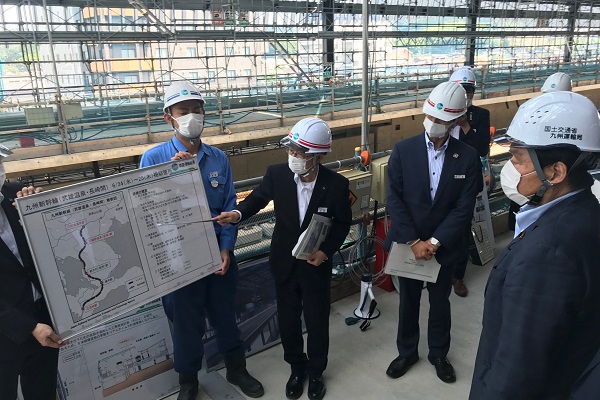 6月24日(水)、長崎線・佐世保線 佐賀駅~武雄温泉駅において在来線特急列車に乗車、視察しました。その後、令和4年度に開業予定である九州新幹線(武雄温泉・長崎間)の武雄温泉駅、嬉野温泉(仮称)駅及び令和元年8月末に豪雨により甚大な被害が発生した長崎自動車道の武雄JCT付近を視察したほか、新型コロナウイルス感染症による観光への影響、観光関連事業の現状やGoToトラベル事業も含めた今後の取組について、佐賀県の観光事業者等と意見交換を行いました。