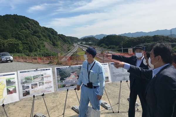 長崎自動車道 武雄JCT付近において復旧状況の概要説明を受ける赤羽大臣