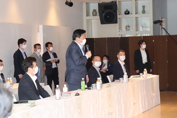 観光事業者等との意見交換会において挨拶する赤羽大臣
