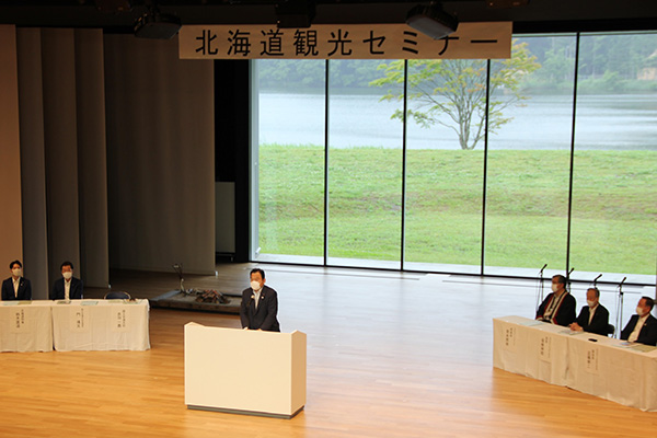 北海道観光セミナーにおいて挨拶をする赤羽大臣