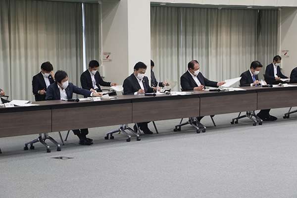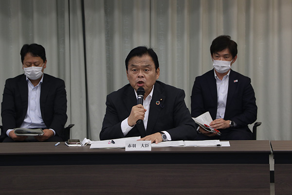会議で発言する赤羽大臣