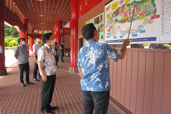 おきなわワールドにて説明を受ける和田政務官