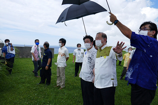 ぎのわん海浜公園を視察する和田政務官