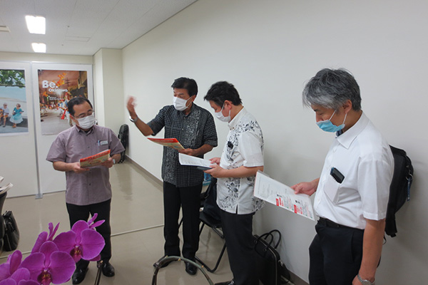 また、10日(金)は、名護市内にて観光事業者等と意見交換を行い、その後、宜野湾市のぎのわん海浜公園及び那覇空港における新型コロナウイルス感染拡大防止対策の強化を図る旅行者専用相談センター沖縄「TACO」を視察しました。