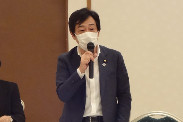 意見交換会において挨拶をする青木副大臣