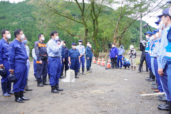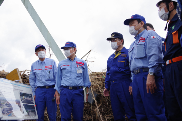 また、夜を徹して災害対応にあたったTEC-FORCE隊員、海上保安庁職員等の関係者に対して労をねぎらうとともに、今後の対応にも全力を尽くすよう激励を行いました。