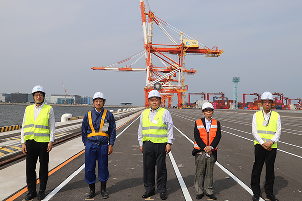 暫定供用を開始した南本牧ふ頭コンテナターミナル(MC-4)を視察する赤羽大臣