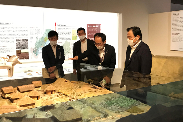 群馬県立歴史博物館にて展示について説明を受ける赤羽大臣