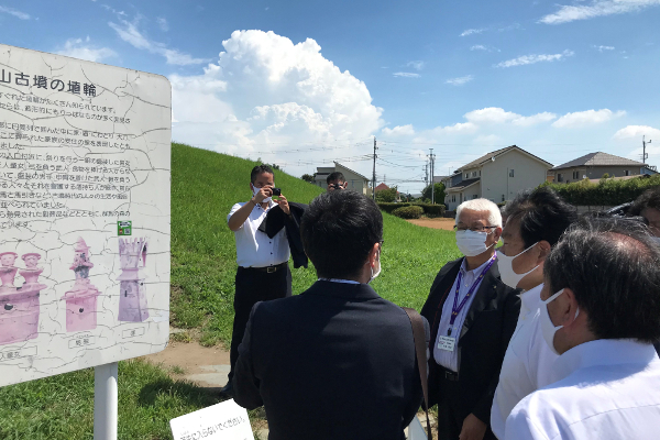 綿貫観音山古墳にて今後の解説整備計画について説明を受ける赤羽大臣