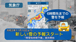 令和3年(2021年)11月からからスタートした新しい雪の予報を紹介します。大雪で道路で立ち往生・・・なんてことにならないよう、外出前に「今後の雪」をチェック!1時間毎の積雪の深さと降雪量を6時間先まで予測します。