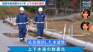 番組では、上下水道を応急的に復旧させている現場を取材。また、マンホールや水道管など災害による被害を抑制するための「上下水道の耐震化」について解説します。能登はもちろん、全国で災害に強いインフラ整備を加速させていきます。