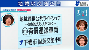 今回の番組では、これら交通空白に関する地域の実情についてご紹介し、解消に向けた取組の一つとして、茨城県の隣接する4市が実施する「地域連携公共ライドシェア」について、取材に伺いました。
