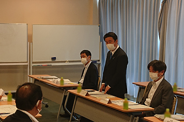 三浦市及び観光・交通事業者等との意見交換会において挨拶をする和田政務官